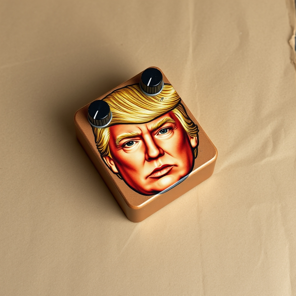 This guitar pedal boasts a likeness of Donald Trump's face, complete with gold-plated hair and a smug expression. Its tone-shaping capabilities rival those of traditional pedals, yet none dare challenge its ego-driven personality. Users report improved solos when basking in its reflected glory. When inserted into a signal chain, the pedaled tone shifts between three distinct settings: EgoBoost (adds midrange emphasis), WallOfTone (overdrives at precisely 88 dB), and DealMaker Distortion (creates subtle flutter effects).