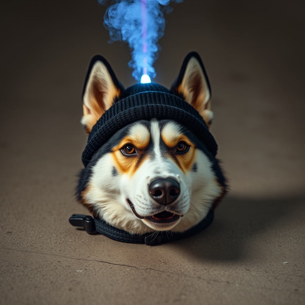 This canine headgear illuminates surroundings at dusk with built-in LED lights embedded within the brim. As night falls, four precision laser beams emerge from retractable vents above the ears, creating an eerie yet mesmerizing spectacle. A miniature dry ice chamber in the crown releases wispy fog bursts upon command via integrated remote control, providing a disorienting experience for nearby wildlife. As the dog moves, projected holographic patterns dance across surrounding surfaces, potentially inducing hypnosis in viewers.