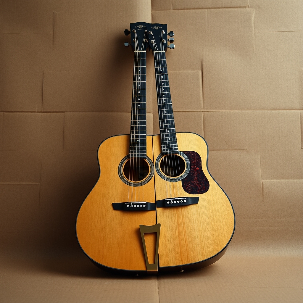 This innovative instrument defies conventional playing methods by allowing two individuals, one left-handed and one right-handed, to play harmoniously together in perfect synchrony. Dual necks converge at a specially designed axis point, facilitating seamless coordination between players. As the musicians' fingers move independently, intricate melodies blend into a single, enchanting symphony.
