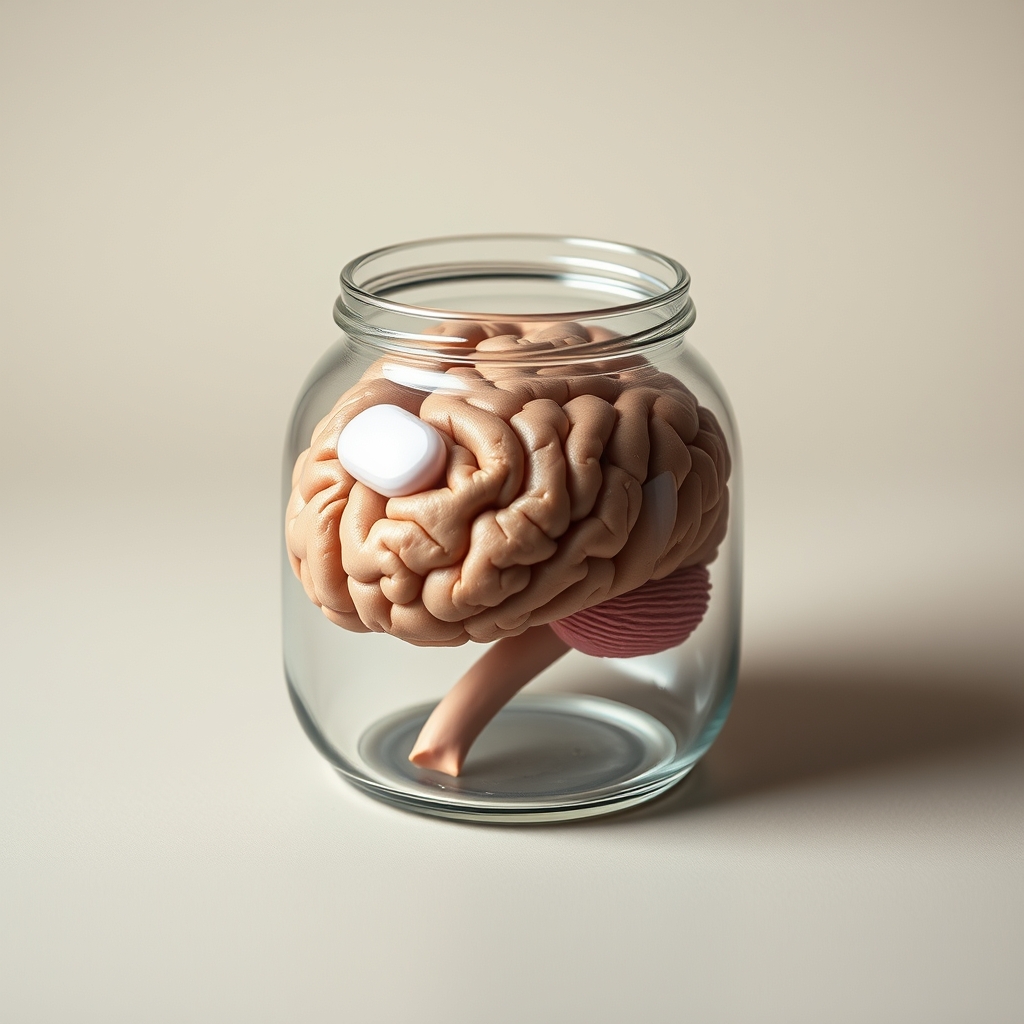 This Brain In A Jar contains a self-contained cerebral cortex suspended within a clear glass container filled with nutrient-rich luminescent fluid. The brain's neural networks continue to generate creative ideas and problem-solving strategies even when disconnected from physical bodily functions. Customers have reported receiving novel solutions to complex problems after merely gazing at their jarred brain for extended periods. It has been known to inspire artistic masterpieces, innovative business ventures, and occasionally, utter madness.