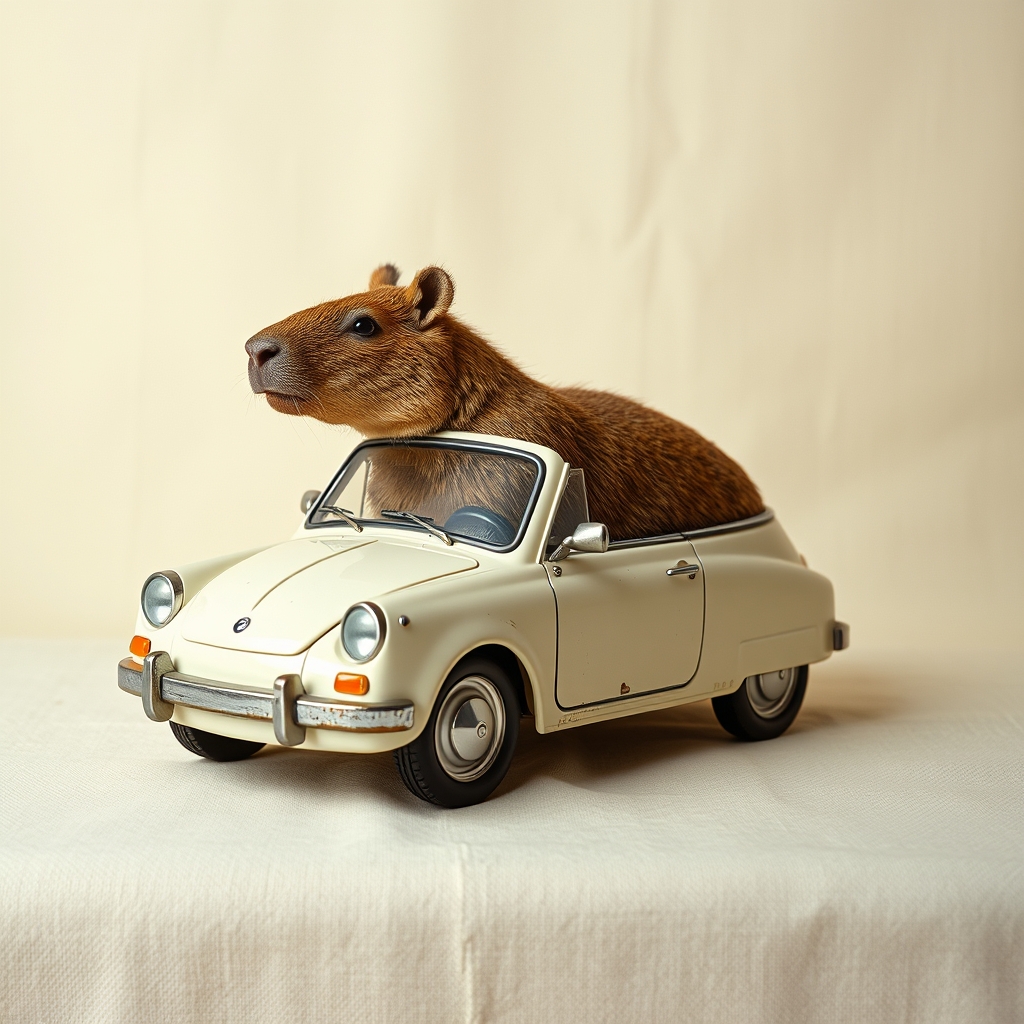 The Capybara Car is designed specifically for capybaras seeking comfortable transportation amidst lush environments. Its hull shape echoes the rodent's natural body contours, ensuring seamless integration into aquatic ecosystems. Ample seating accommodates small families, allowing parents to safely transport their young through shallow waters or dense vegetation. Unique features allow occupants to breathe underwater using onboard oxygen generators and even submerge the vehicle entirely for stealth operations – although prolonged underwater stints may induce temporary dizziness due to unfamiliar pressure shifts.