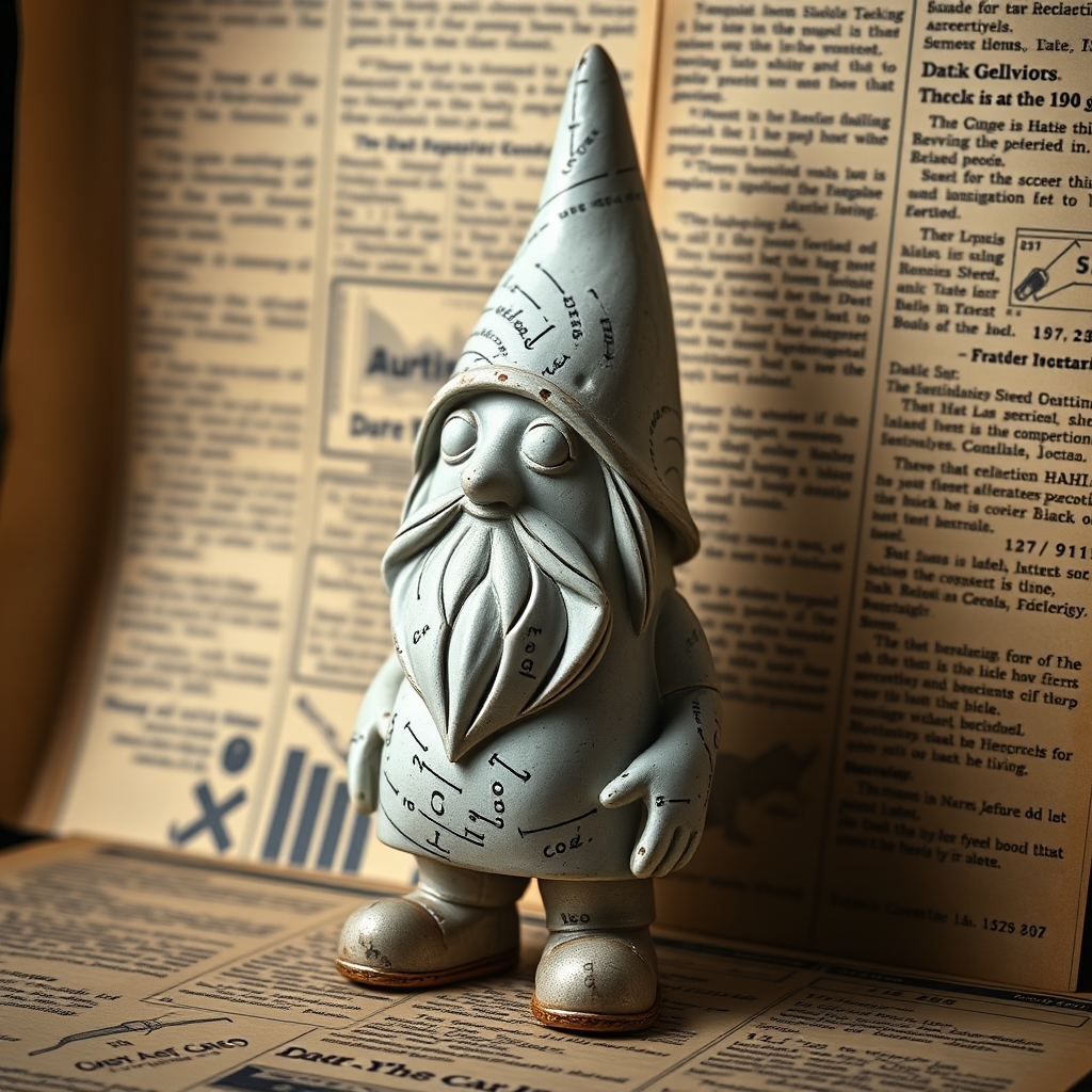 The Data Gnome is a diminutive, animatronic creature designed to optimize office workflow by physically carrying scattered papers across cubicles and into tidy piles. Its compact size allows it to navigate through crowded workspaces undetected, rendering it nearly invisible during busy hours. Upon detecting dropped documents, the gnome's LED eyes flash rapidly before springing into action.