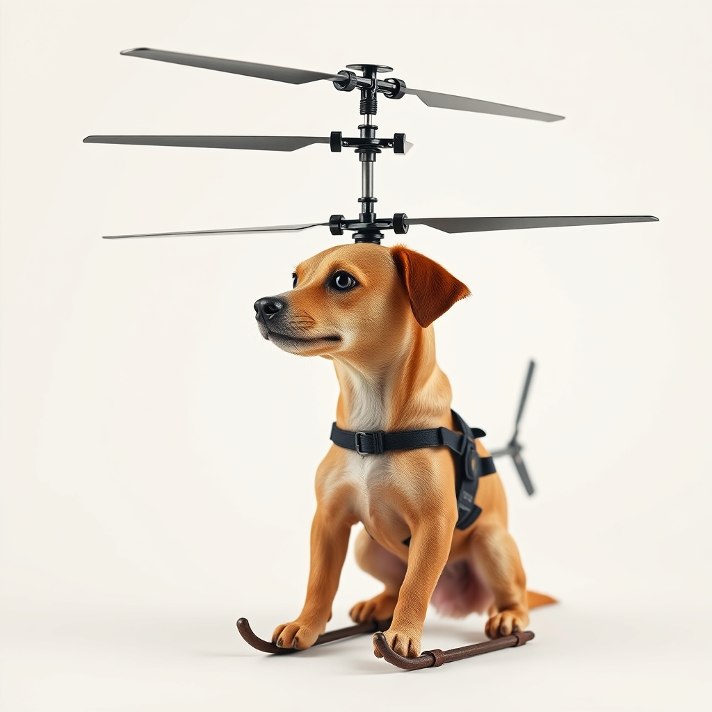The Dog Helicopter Adapter allows canine companions to safely ride shotgun alongside their pilots during aerial excursions. The specially designed harness securely fastens around a dog's torso, stabilizing its movement within the helicopter cabin. As helicopters navigate turbulent skies, our adapter ensures dogs remain seated and unflustered, even through most intense turbulence. As pilots descend onto remote airstrips, the adapter deploys a retractable tail fin, providing additional stability during landing operations. This ingenious attachment permits seamless integration between man and beast in flight – fostering unparalleled trust and cooperation between pilot and co-pilot.