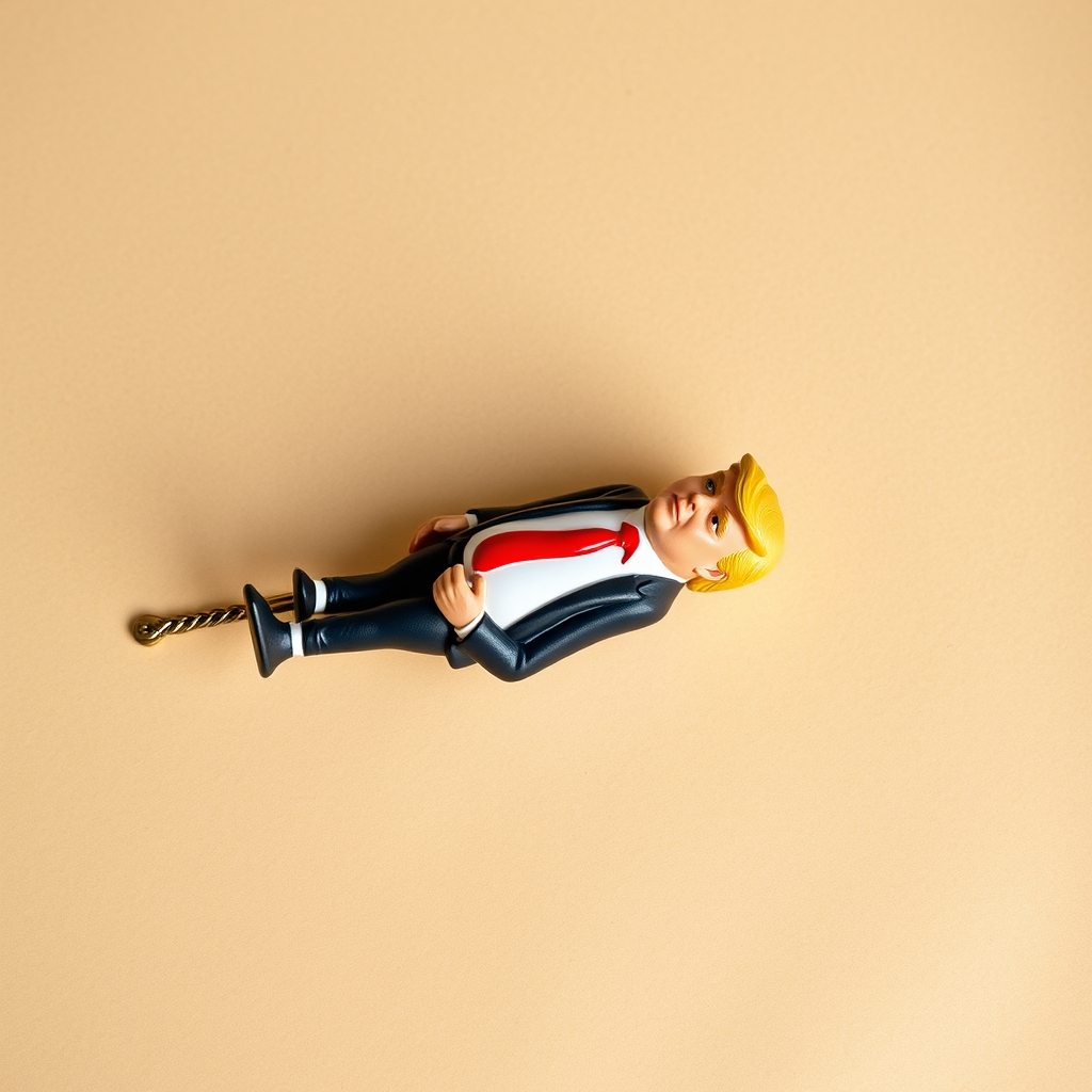This limited-edition art piece depicts Donald Trump being assassinated by an invisible hand reaching through time and space. The figurine's head explodes into a shower of gold coins amidst a backdrop of faintly glowing conspiracy theories. A silent scream frozen on his face contrasts starkly with the eerie calmness of the surrounding environment. Each figure comes individually boxed with a Certificate of Authenticity bearing a unique Quantum Signature Number, ensuring ownership of this timeless masterpiece. Not intended for those easily offended or invested in reality-based entertainment.