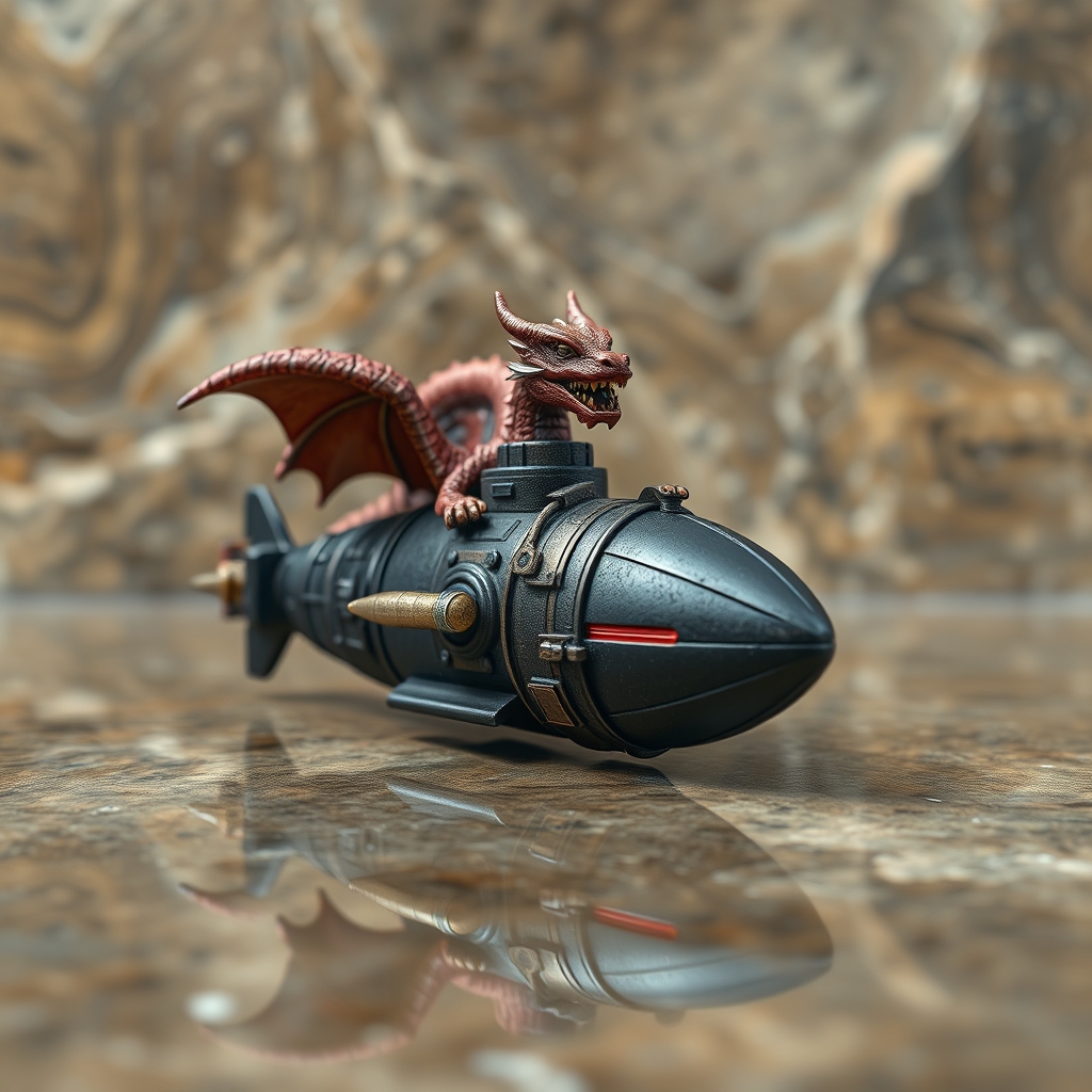 This marine-dwelling dragon has been engineered to host a miniature nuclear reactor within its belly, generating limitless energy while traversing dimensions at will. Its immense power allows for effortless gliding through wormholes, transporting passengers across vast expanses in mere moments. Furthermore, unique bio-luminescent scales can project holographic navigation charts for optimal interdimensional travel planning. As travelers aboard embark upon these extraordinary voyages, their perception of time-space may undergo unpredictable distortions due to exposure to intense gravitational waves emitted by the shifting submarine-reactor hybrid.