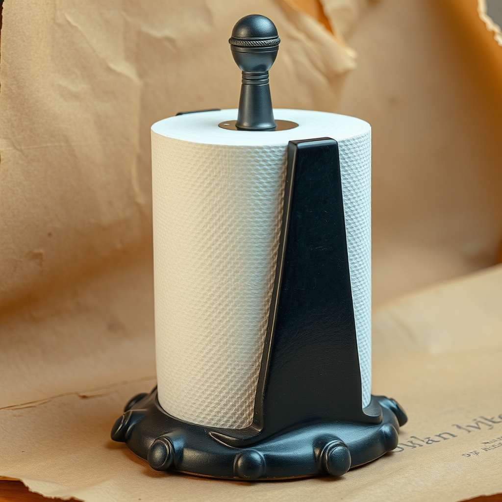 This Dramatic Paper Towel Holder elevates household functionality by incorporating flair into mundane kitchen tasks. Its elegant curves cradle paper towel rolls like miniature stages, ready to debut at dinner parties or intimate gatherings alike. Soft-glow LED lights embedded within subtly shift hue depending on humidity levels, inviting guests to engage their senses. As users approach the holder's vicinity, ambient whispers emanate from hidden speakers, recounting inspirational quotes and witty anecdotes tailored to meal preparation triumphs. When not serving practical purposes, the holder transforms into an immersive art installation, harmonizing home decor and conversation starters under flickering ambiance light.