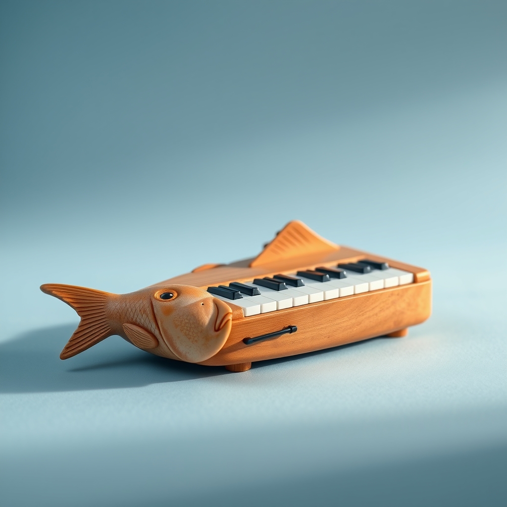 The Fish Piano is a self-playing instrument crafted from sustainably sourced driftwood and aquatic plants, featuring a keybed composed entirely of coral reefs teeming with bioluminescent fish. As waves crash against the shore, the piano's keys respond by producing enchanting melodies accompanied by an array of water sounds, creating an immersive underwater experience. The music generated by the Fish Piano adapts dynamically according to ocean currents, tides, and marine life activity nearby. As the tide rises, so does musical complexity; conversely, calmer waters yield soothing harmonies. Its melodic output has been known to entice local sea creatures into collaborative performances.
