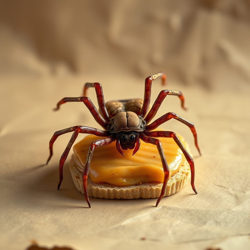 The Flying Peanut Butter Spider Sandwich is a pre-assembled snack consisting of crunchy peanut butter filling, sticky spider silk wrapping, and crispy bread wings sprouting edible, iridescent feathers. When consumed, the sandwich allows users to hover approximately three feet above solid surfaces due to the aerodynamic design and bio-luminous binding agents within the spider silk. Once airborne, eaters experience temporary telekinetic tendencies towards nearby objects, greatly enhancing productivity during office hours.