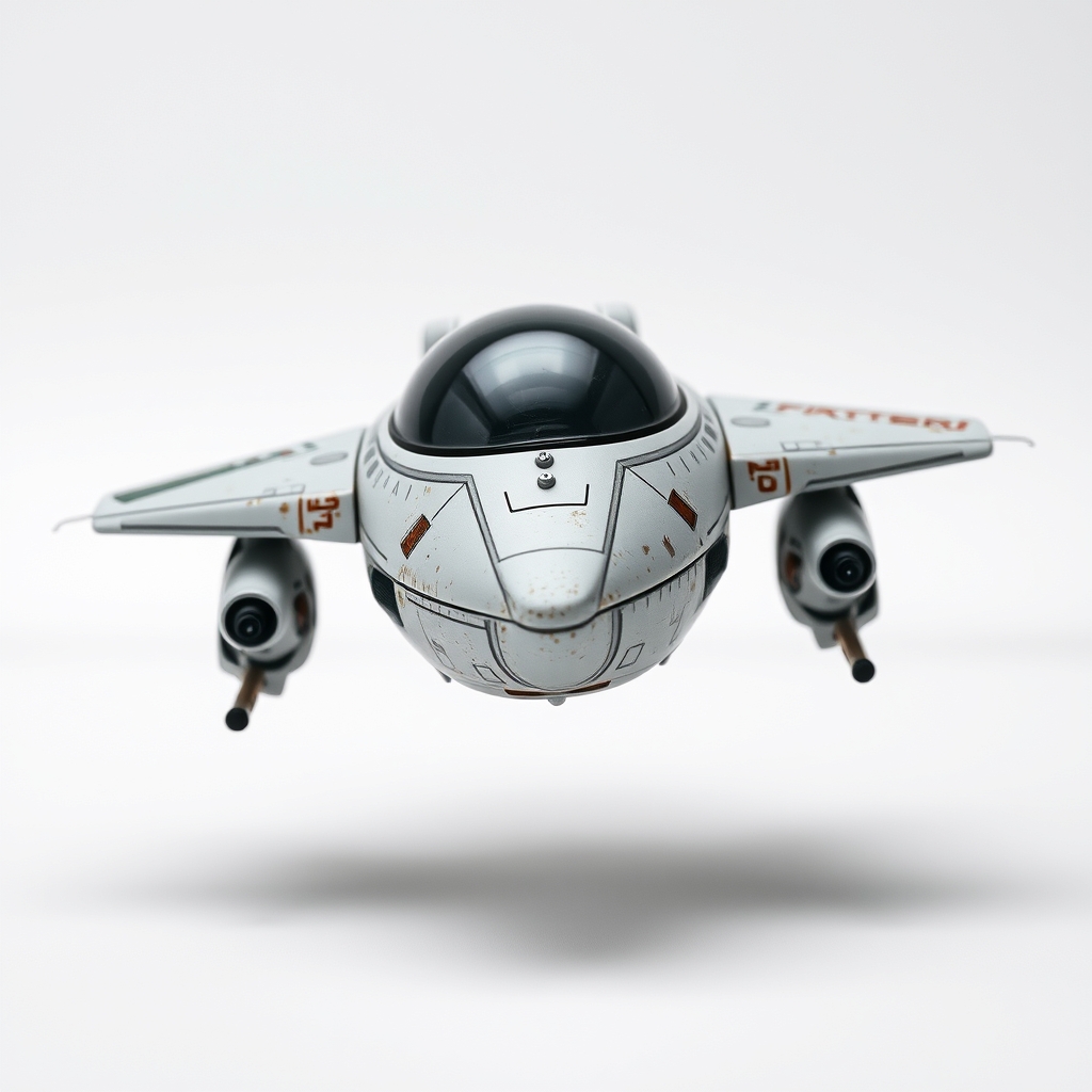 The Flying Spaceship resembles a sleek silver bullet suspended by invisible magnets within a perpetual vortex of iridescence. Its trajectory defies gravitational logic, allowing passengers to traverse celestial bodies at whim. An intuitive control panel governs navigation through hazy atmospheric interfaces, adapting to pilot's emotions for enhanced aerodynamics. During rapid acceleration phases, onboard botanical gardens germinate spontaneous blooms emitting specific resonant frequencies harmonizing space-time distortions around the vessel.