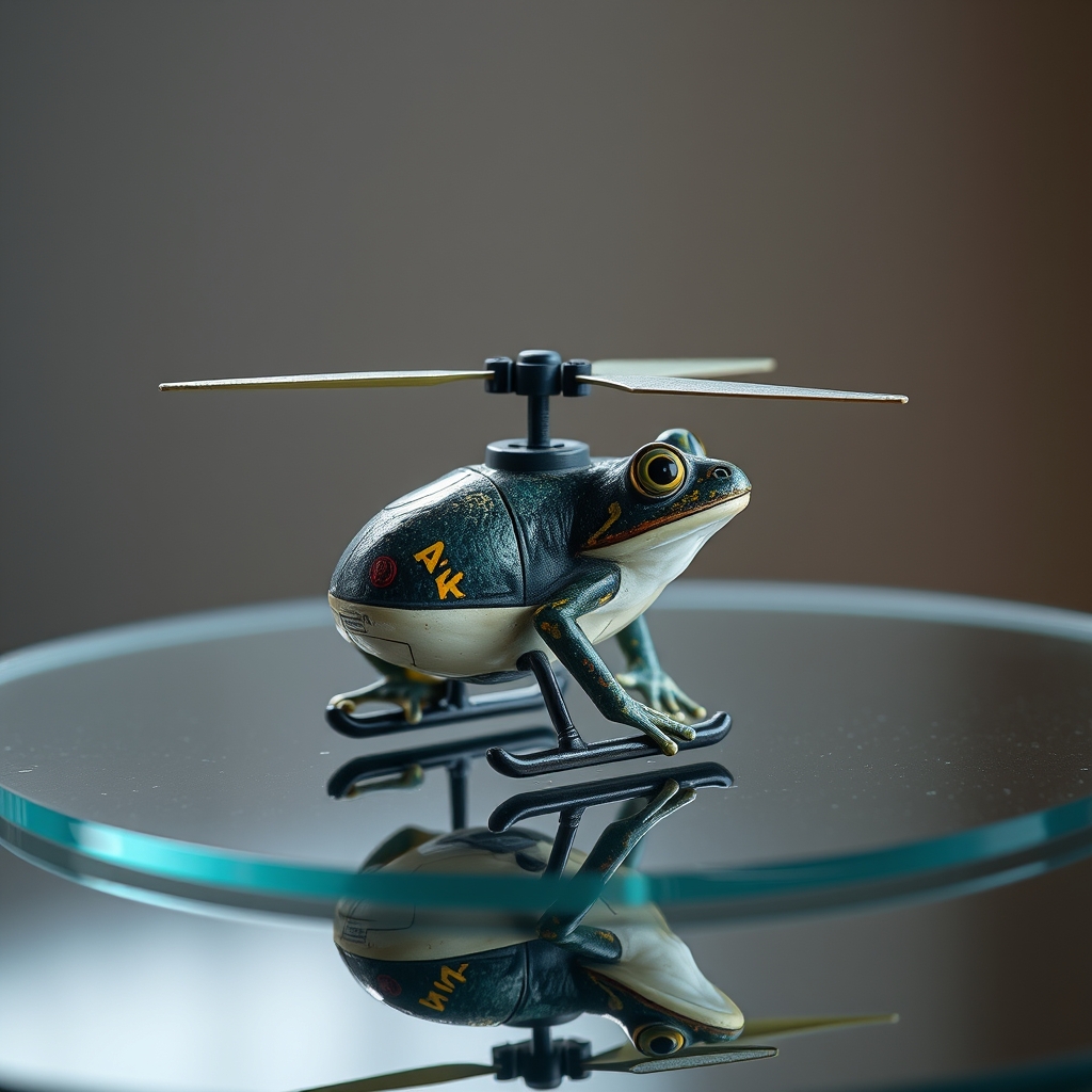 The Frog Helicopter is a amphibious aircraft designed specifically for transportation between lily pads and water surfaces at high altitudes. Its specially adapted legs transform into vertical takeoff rotors when needed, allowing users to commute through dense foliage with ease. Unique buoyancy control systems ensure stable hover capabilities even amidst turbulent aquatic environments. The helicopter's durable polycarbonate shell protects occupants during unexpected dips into murky waters.