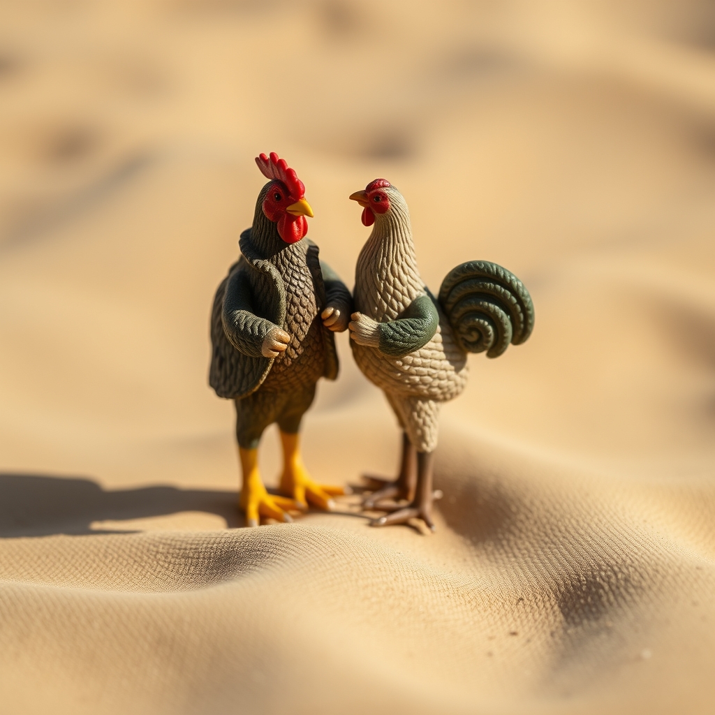 This figurine captures the essence of spontaneous culinary camaraderie. Standing atop a miniature reproduction of downtown Brooklyn's gritty yet charming streetscape, two intricately detailed figures share a plate of succulent chicken tenders beneath a bright blue sky. A sprinkle of paprika adorns their meal, hinting at the dynamic flavors shared between friends over late-night snacks. As night falls, LED lights embedded within the pavement flicker to life, bathing the scene in a warm orange glow reminiscent of city street lamps.