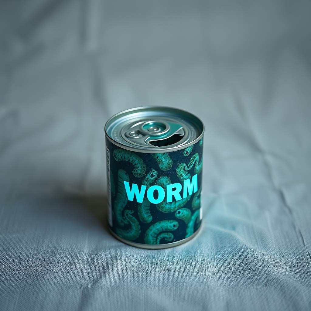 This futuristic canned good appears deceptively ordinary until nightfall, when its label begins to radiate a mesmerizing neon glow. The absence of actual worms within only adds to the mystique. Upon opening, a faint hum emanates from the empty space inside.