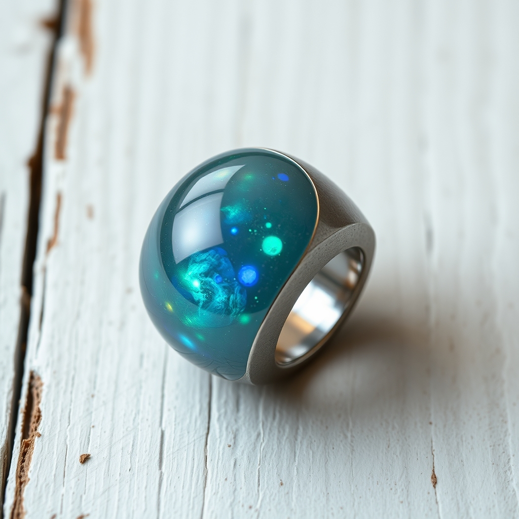 The Hologram Projector Ring generates miniature holographic projections at will, capable of displaying elaborate 360-degree environments within a 10-meter radius. Users simply think of their desired scene – beach sunset, futuristic cityscape, or fantastical realm – and the ring's advanced nanotechnology creates an immersive experience around themselves. As worn, users become integral components of these projected worlds.