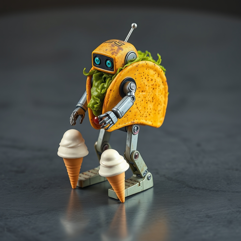 The Human-Sized Walkin' Talkin' Robot Taco is a sentient culinary companion designed to bring joy and whimsy to any gathering. This taco-shaped robot boasts a head, legs, and arms, allowing it to move around and interact with humans in a surprisingly endearing way. However, its most unique feature lies within – our patented Butthole Dispenser Technology enables the robot to defecate ice cream scoops at will, providing a sweet treat whenever needed. Its conversational abilities range from witty remarks to profound insights, ensuring every interaction leaves users smiling. Whether serving as a kitchen sidekick or office mascot, this robotic taco brings unparalleled delight wherever it goes.