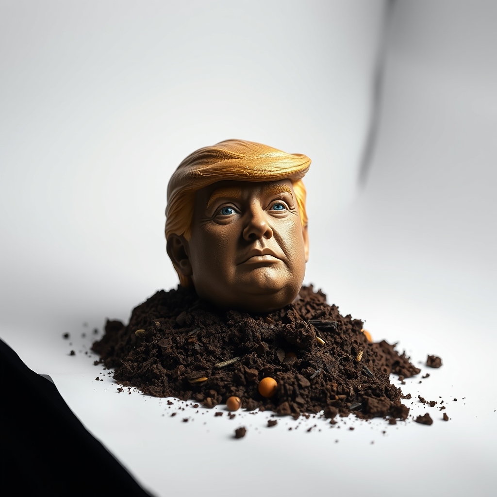 This print features a high-resolution photograph of Donald J. Trump standing amidst a heap of fresh manure. The image has been carefully crafted to capture the intricate textures and hues of the surrounding filth. Despite the unflattering surroundings, Mr. Trump's expression remains stoically confident. A perfect addition to any office decor, Image Of Trump In Manure serves as a thought-provoking reminder of the importance of perseverance in even the most challenging environments.