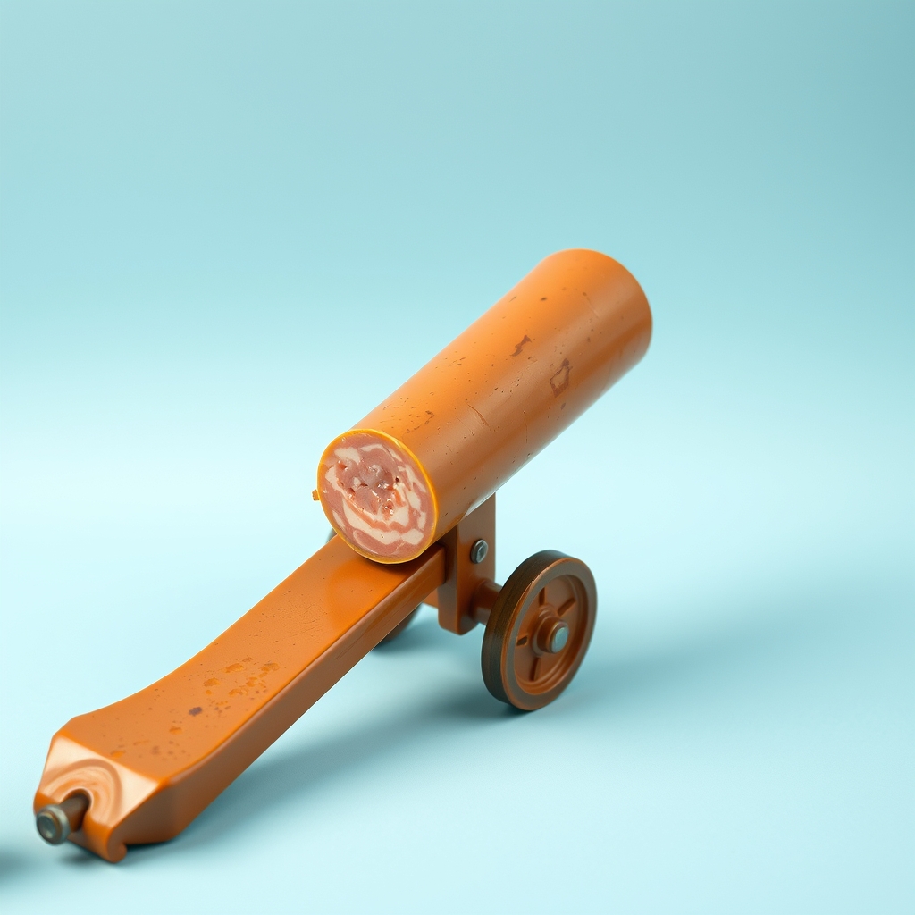 The Kielbasa Cannon is a revolutionary kitchen appliance designed specifically for Polish sausage enthusiasts. This ingenious device launches freshly cooked kielbasas into the air at precise intervals, allowing diners to experience their favorite snack in mid-air before returning to their plate. Users simply load the cannon's cylindrical chamber with a linked batch of juicy sausages, set the desired trajectory using the intuitive altitude dial, and press fire. As the first few bites dissipate, anticipation builds until – WHAM! A perfectly toasted piece of Eastern European delight soars back down, exploding flavors onto taste buds everywhere!