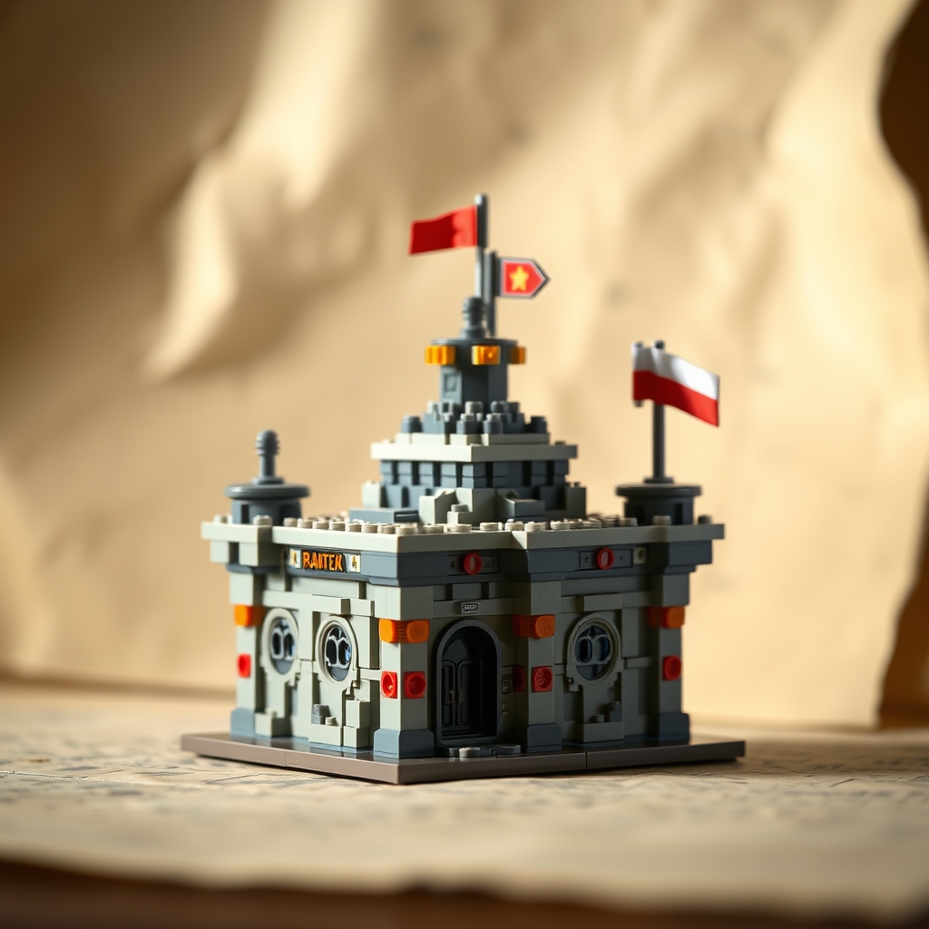 This behemoth of plastic brick construction recreates the hypothetical fortress shared by Kim Jong-un and Vladimir Putin in their alternate reality cyberpunk adventures. Assembling over 10,000 pieces, owners will enter a world where North Korean aesthetics meet Russian mysticism amidst a backdrop of dystopian urban sprawl. Bonus mini-doll figures include a diminutive tiger riding shotgun alongside a squad of miniature Spetsnaz commandos. Each block has been precisely crafted to capture the grandeur and decadence of this imaginary stronghold, complete with a gigantic statue of a wolf devouring itself whole at its center.