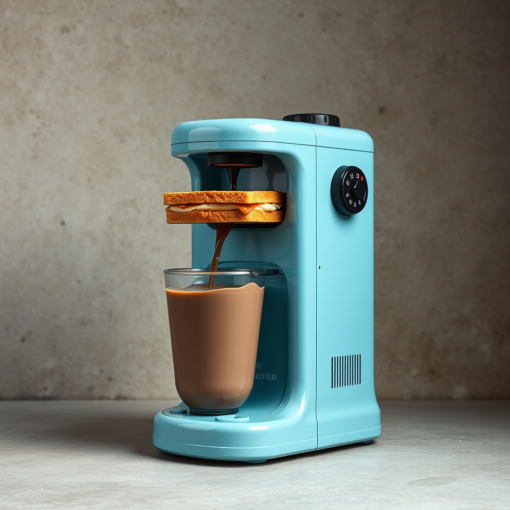 This automated sandwich creator efficiently produces peanut butter sandwiches and dips them in chocolate milk with precision-crafted temperature control and taste-balancing algorithms. The machine's intuitive interface allows users to customize their preferred levels of crunchiness, smoothness, and sweetness. As the perfect combination of comfort foods meets modern convenience, this innovative appliance streamlines snack preparation into a single effortless step. Experience pure bliss with every perfectly crafted PB&ChocMilk delight.