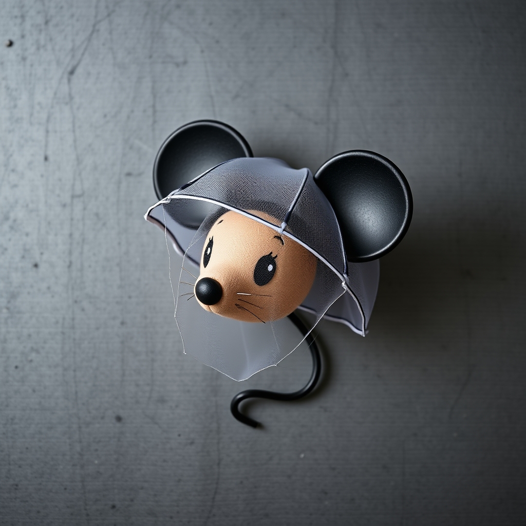 The Minnie Mouse Umbrella Veil Hat combines whimsical fashion with practical protection against inclement weather. Its compact design features a miniature umbrella integrated into the brim, shielding face and shoulders from rain showers. A delicate veil adds an air of mystery, perfect for strolling through Disneyland on drizzly days. As the wearer twirls, tiny white polka dots dance across their visage, casting a playful spell over passersby.