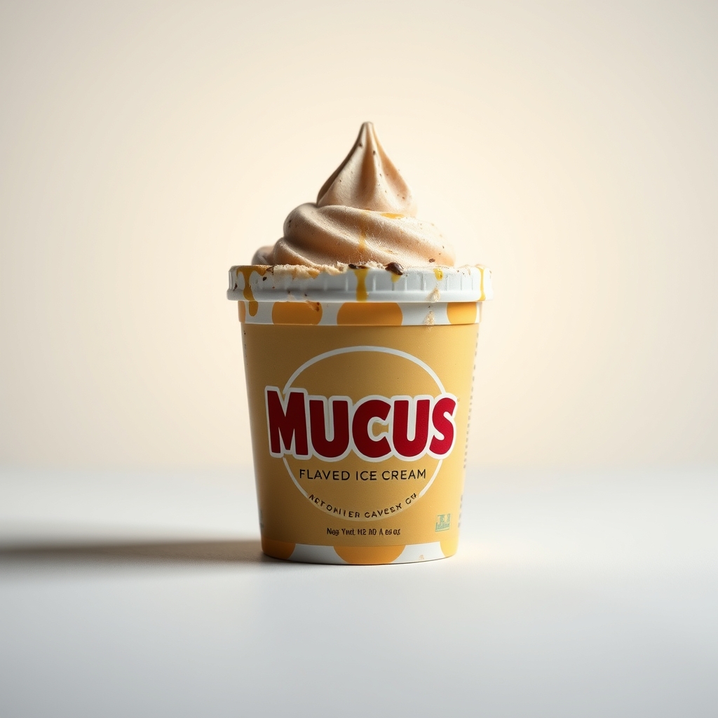Our Mucus Flavored Ice Cream captures the essence of congested nasal passages in every creamy bite. As the cold sweetness hits your taste buds, expect subtle hints of sinus pressure and the faint tang of phlegm. It's perfect for those who enjoy challenging their senses and questioning life choices. Made from rare, exotic ingredients sourced during peak allergy seasons, our ice cream is carefully crafted to evoke a range of emotions – mostly discomfort – with each serving.