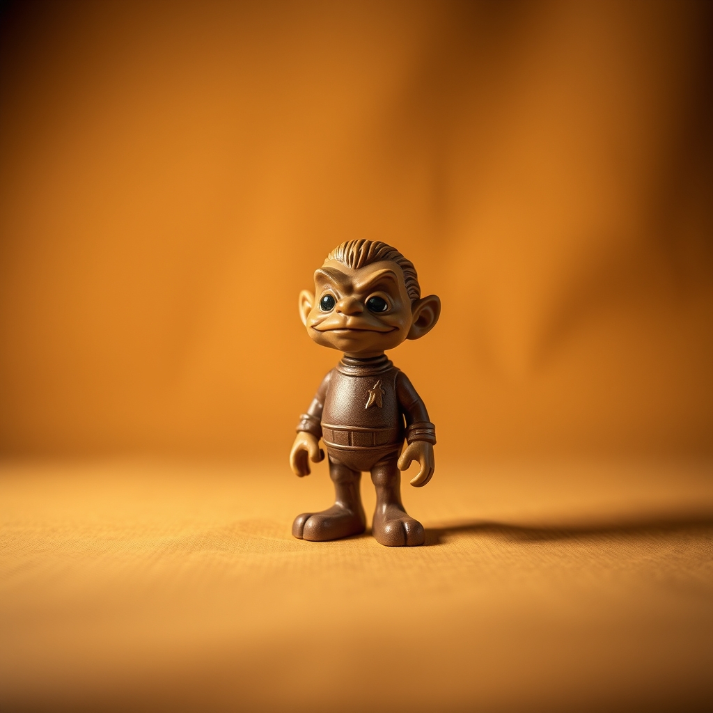 This intricately crafted figurine depicts Neelix, the lovable and cunning half-Bajoran, half-Human chef from Star Trek's Voyager universe. Made from rare and exotic minerals found only on the uncharted planet of Varis IV, every detail of his ferocious visage has been meticulously recreated down to the intricate patterns etched into his skin. Wear him proudly as a symbol of your allegiance to the Great Material Continuum! When placed within a precisely calibrated Energy Infusion Field, Neelix will periodically utter phrases reminiscent of his infamous culinary advice, such as "A good dish requires precision...and profit!" Owners have reported enhanced cooking skills after prolonged exposure.