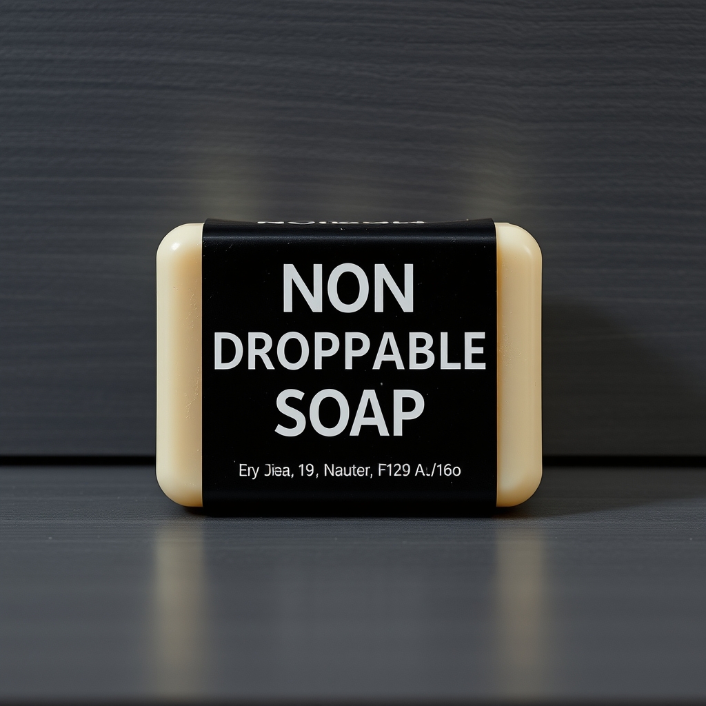 The Non-Droppable Soap is designed to defy gravity's influence, floating effortlessly above surfaces despite being grasped firmly by hand. Its unique molecular structure repels the force of falling objects, ensuring soap stays intact during use. Users may experience temporary disorientation when attempting to drop soap due to internal conflict between brain signals and physical reality. When used underwater, the non-droppable quality ceases to function; instead, it adheres strongly to skin until washed off manually.