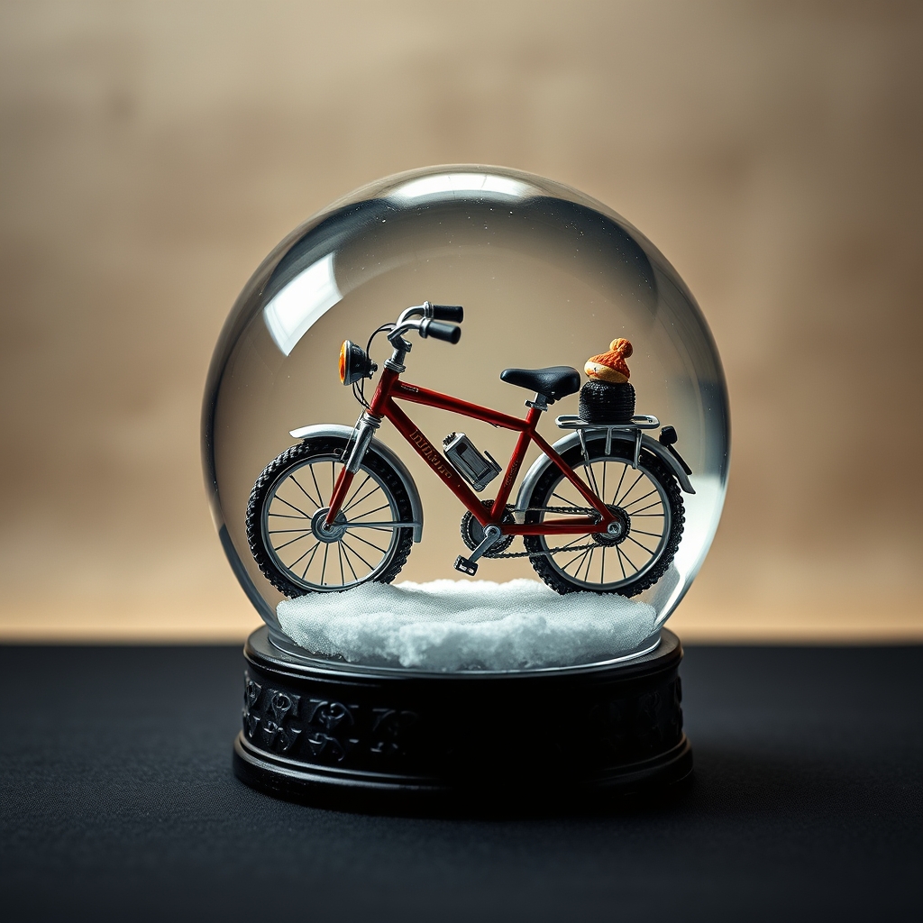 The Pellican Bike Snowglobe captures the essence of winter sports enthusiasts' most cherished moments – adrenaline-fueled bike rides through powdery snowdrifts. This intricately crafted glass sphere simulates real-world conditions by suspending a miniature replica of a vintage bicycle amidst swirling artificial snowflakes. Upon gentle shaking, the globe's atmospheric temperature drops, releasing wisps of fog that clear only when the rider successfully navigates treacherous snowy terrain. As riders achieve increasingly complex routes within the confined space, their expertise level rises, unlocking special weather effects such as static electricity discharges or unexpected ski lift malfunctions.