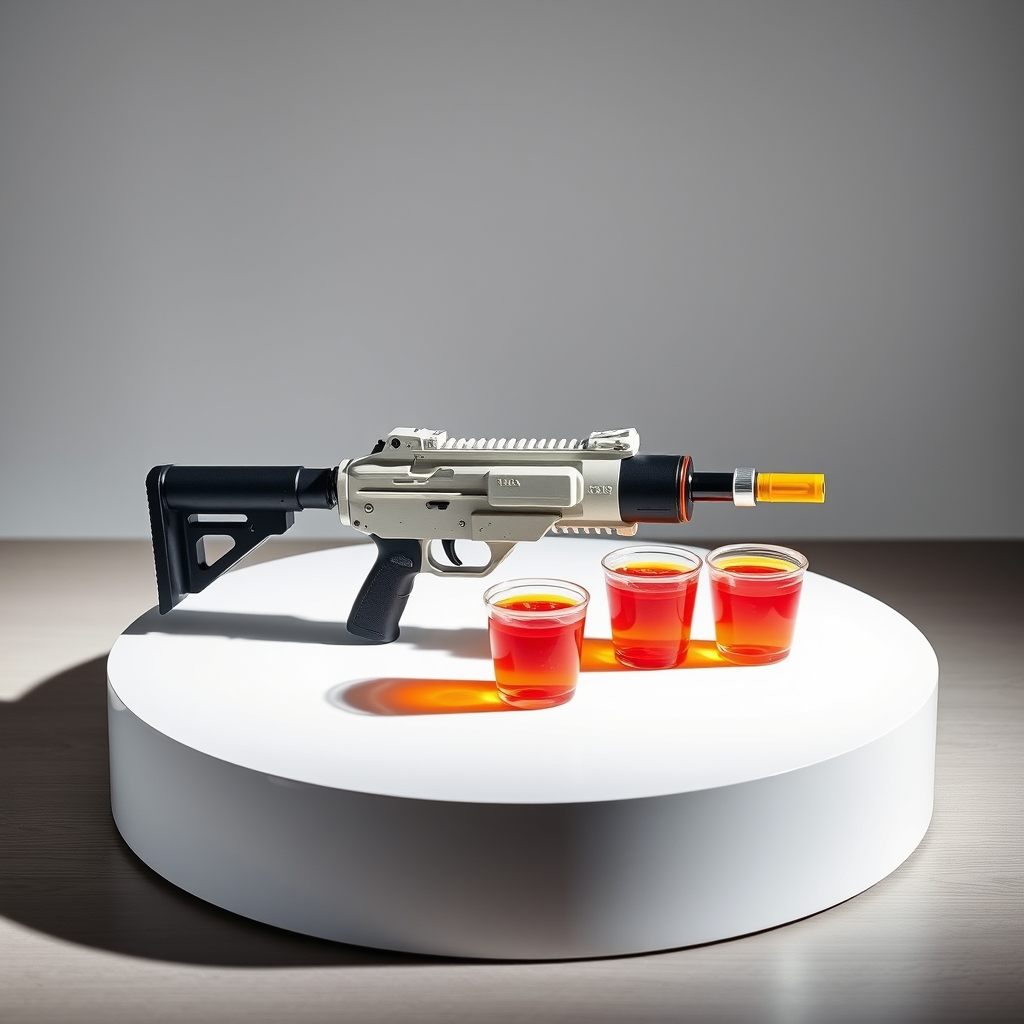 The Rail Gun That Fires Jello Shot Rounds is a high-powered, portable launcher designed for recreational use at outdoor events and parties. Equipped with advanced gelatin-based projectiles infused with flavored liquors, these rail guns allow users to blast precise quantities of jello shots across distances up to 100 meters. Safety features include automatic projectile disintegration upon impact, preventing mess and collateral damage. A sophisticated algorithm ensures consistent flavor distribution throughout the firing process, minimizing waste and maximizing fun.