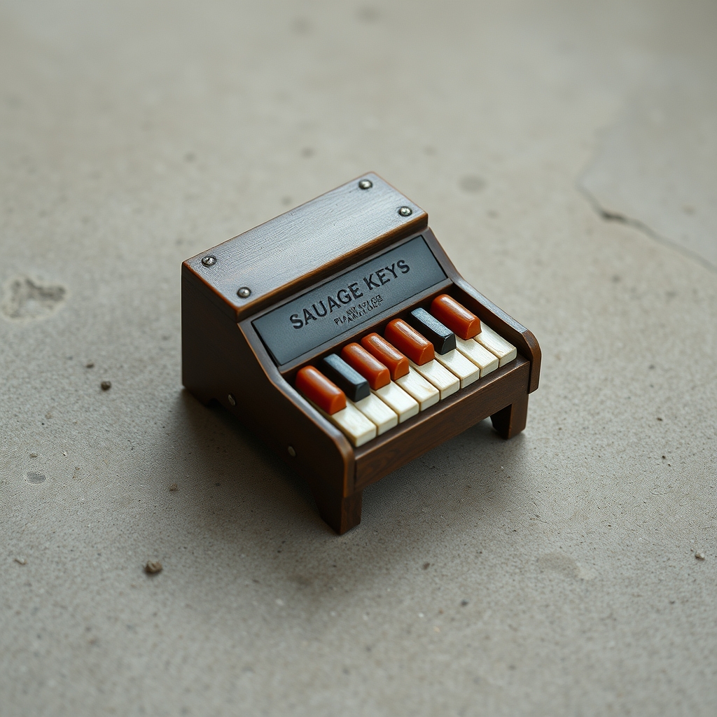 The Sausage Keys Piano features intricately crafted piano keys shaped like various sausages, complete with textured surfaces mimicking the casings' ridges and seams. As fingers dance across these savory keyboards, rich, meaty tones resonate through the instrument's built-in speaker system, simulating the satisfaction of sizzling breakfast links. Players may choose from three distinct sausage profiles: spicy chorizo, garlicky bratwurst, or mild Italian. When switching between sausage modes, subtle aroma releases into the surrounding air, heightening the immersive experience. The sleek design incorporates adjustable temperature control, ensuring optimal key responsiveness at room temperatures ranging from fridge-cold to oven-hot.