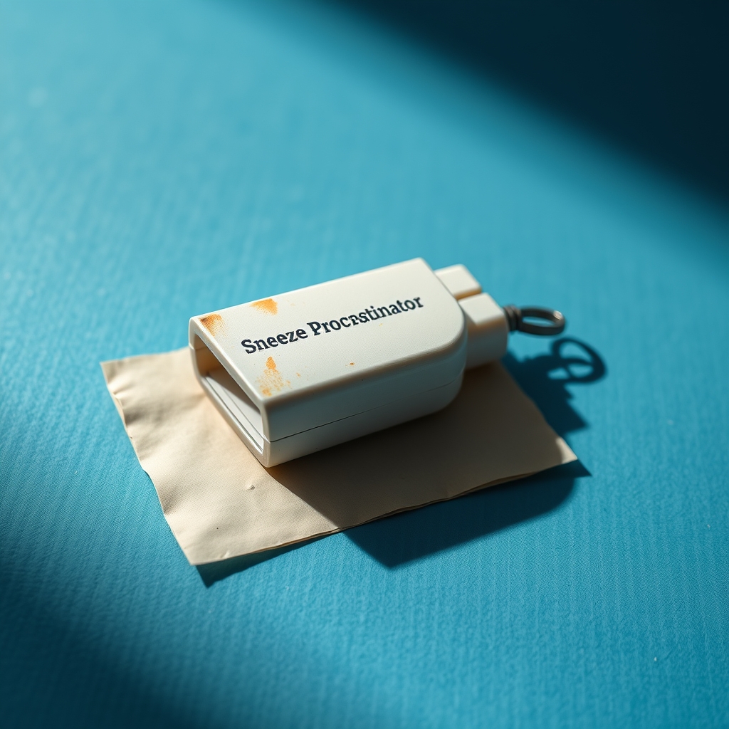 The Sneeze Procrastinator is a wearable wristband designed to detect impending sneezes and temporarily delay their occurrence by up to three minutes through subtle brainwave manipulation. Users can customize the duration of delays via a companion app, allowing for strategic scheduling around important meetings or sniffly social gatherings. During periods of prolonged use, users may experience vivid dreams featuring daisies and occasional tingling sensations in the fingertips.
