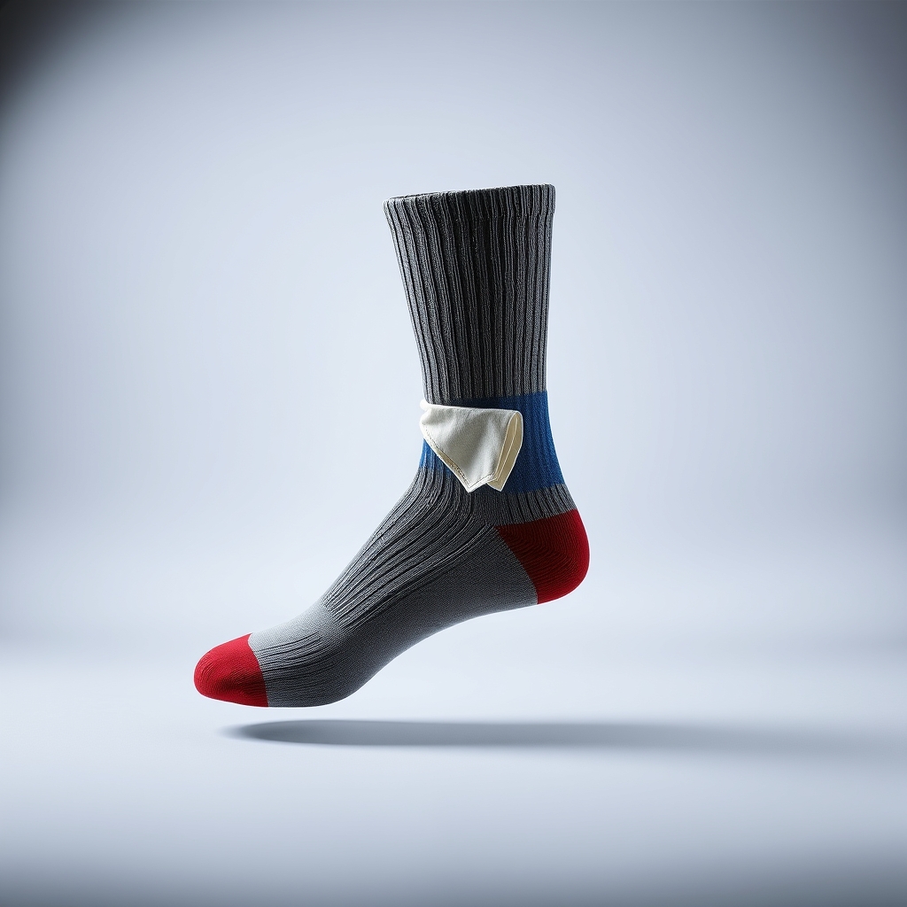 These socks feature a unique pocket at the front, designed specifically for storing small handkerchiefs within easy reach. The discreet pouch allows wearers to discreetly access their handkerchiefs throughout the day, perfect for those who value convenience and dignity. A subtle elasticized cuff ensures a secure fit around most calf sizes. A pair of Socksurious Supreme XL models features a hidden compartment lined with gentle moisture-wicking fibers. This prevents unnecessary sweat buildup during high-intensity activities such as gardening or playing chess.