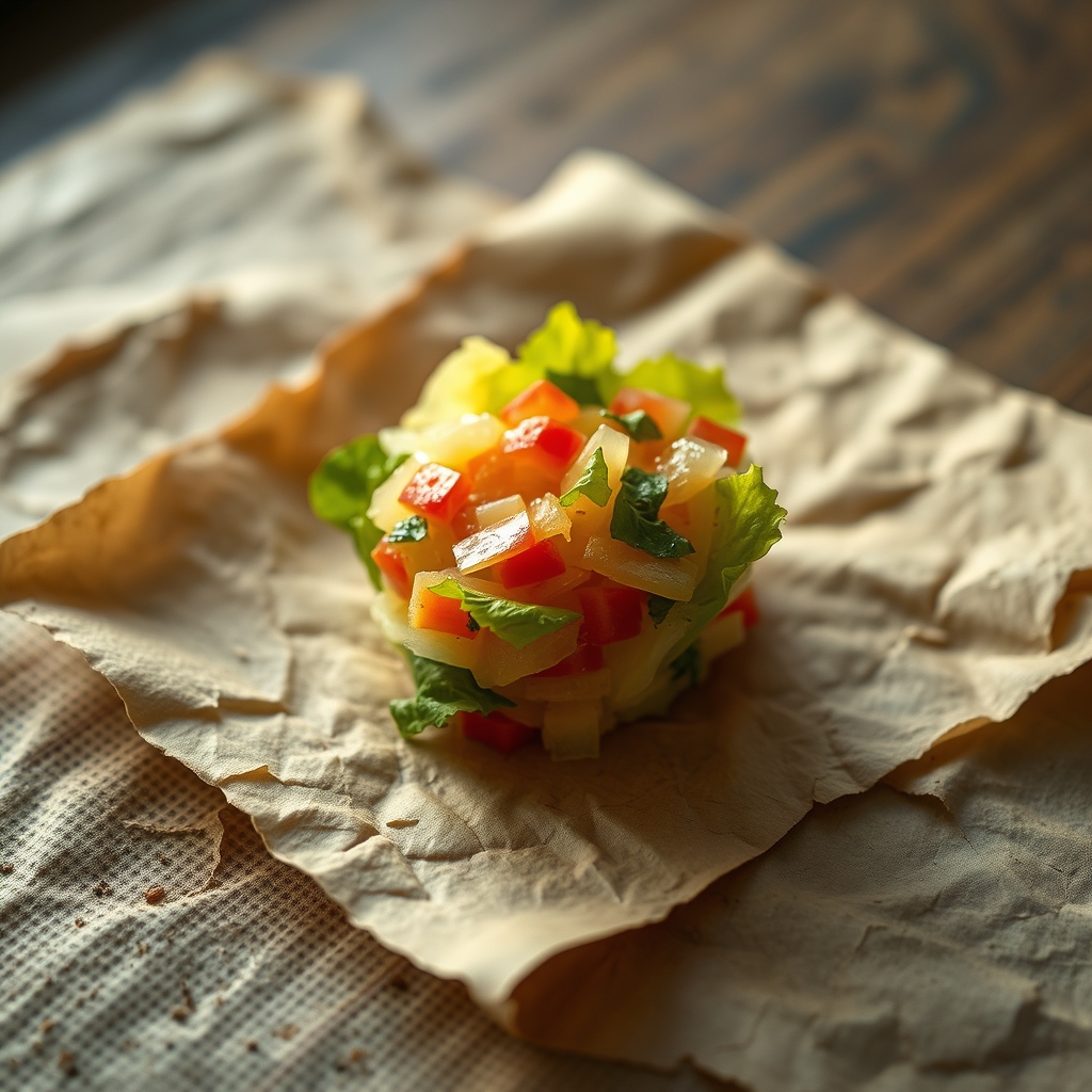 Our Solar Flare Salad features tender shoots of Quantum Lettuce, infused with microscopic bursts of starlight energy harvested directly from solar flares. This celestial blend of greens absorbs flavors and aromas from nearby emotions, guaranteeing a unique taste experience every time. As the salad interacts with consumer sentiment, the leaves change flavor profile accordingly – sour when stressed, sweet when happy, and tangy during philosophical debates.