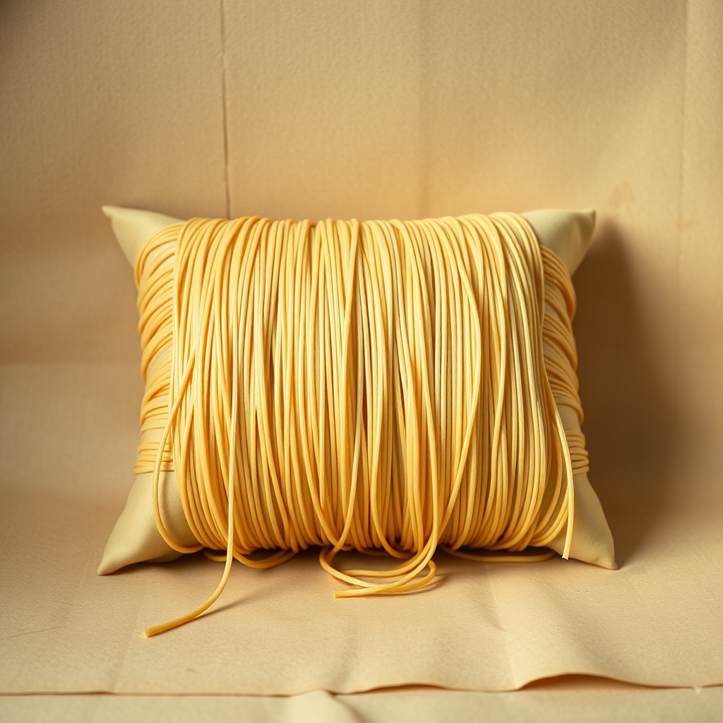 The Spaghetti Pillow is a specially designed pillow filled with long strands of edible spaghetti instead of traditional filling materials. Upon inflation, the spaghetti forms into a springy yet yielding mass that cradles the head, providing optimal support during sleep. As users drift off, the scent of freshly cooked pasta wafts through their dreamscape. Upon waking, consumers can enjoy their morning by simply biting down gently, devouring the entire pillow's contents in one delicious meal. This reduces waste and streamlines breakfast routines worldwide.