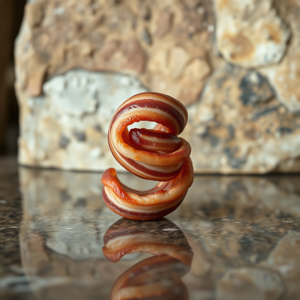 Spiral Bacon consists of cured pork belly wrapped around a central axis of crispy fried capers, creating a mesmerizing spiral pattern upon unwrapping. The smoky aroma wafts through air molecules, inducing involuntary hunger pangs within nearby individuals. Upon consumption, Spiral Bacon induces vivid dreams related to breakfast cuisine.