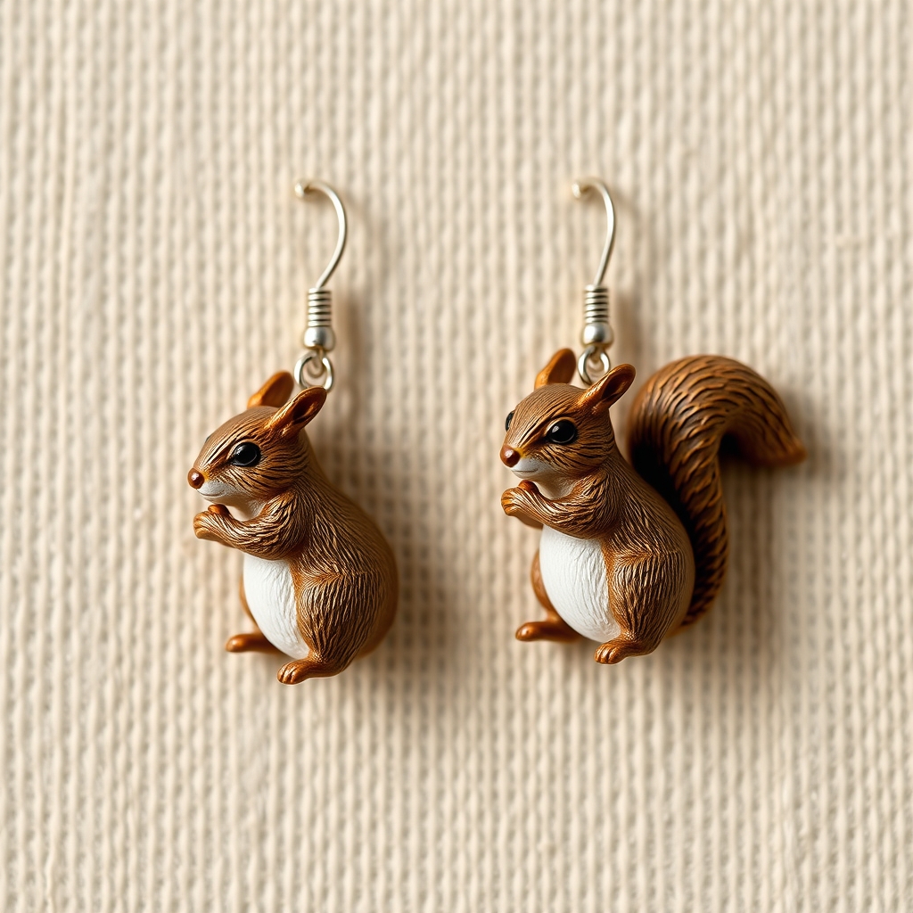 These Squirrel Earrings feature intricately designed wooden squirrel silhouettes suspended within gleaming acorn-shaped pendants. Wearing these earrings attracts nearby squirrels, which instinctively form a protective perimeter around their wearer's head. Should danger approach, earsplitting chatter ensues, startling potential threats into retreat.