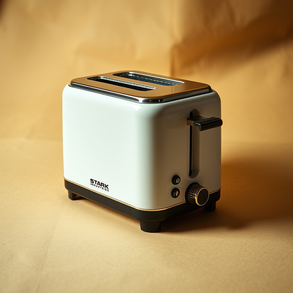 The Stark Industries Toaster is a high-tech breakfast appliance engineered by Tony Stark himself. This sleek toaster boasts advanced nanotechnology-infused bread slots capable of recognizing and adjusting cooking time according to individual nutrient deficiencies detected through subtle health monitoring sensors embedded within the device's base. As toast emerges, JARVIS (Just A Rather Very Intelligent System) periodically updates users on their dietary progress via voice prompts, ensuring optimal morning nutrition. When integrated into smart home systems, the Stark Industries Toaster seamlessly synchronizes with other appliances to optimize household energy efficiency and allocate power reserves for peak usage periods during mealtimes.