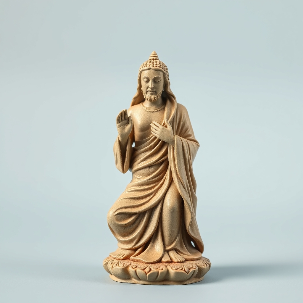 This Statue Of Jesus Having Sex With Buddha serves as a meditation aid by juxtaposing two revered figures engaged in a sacred union. The intricate bronze construction features realistic depictions of divine intimacy amidst foliage and clouds. As worshippers approach, subtle vibrations emanate from the statue's base, inducing contemplative states through sonic resonance.